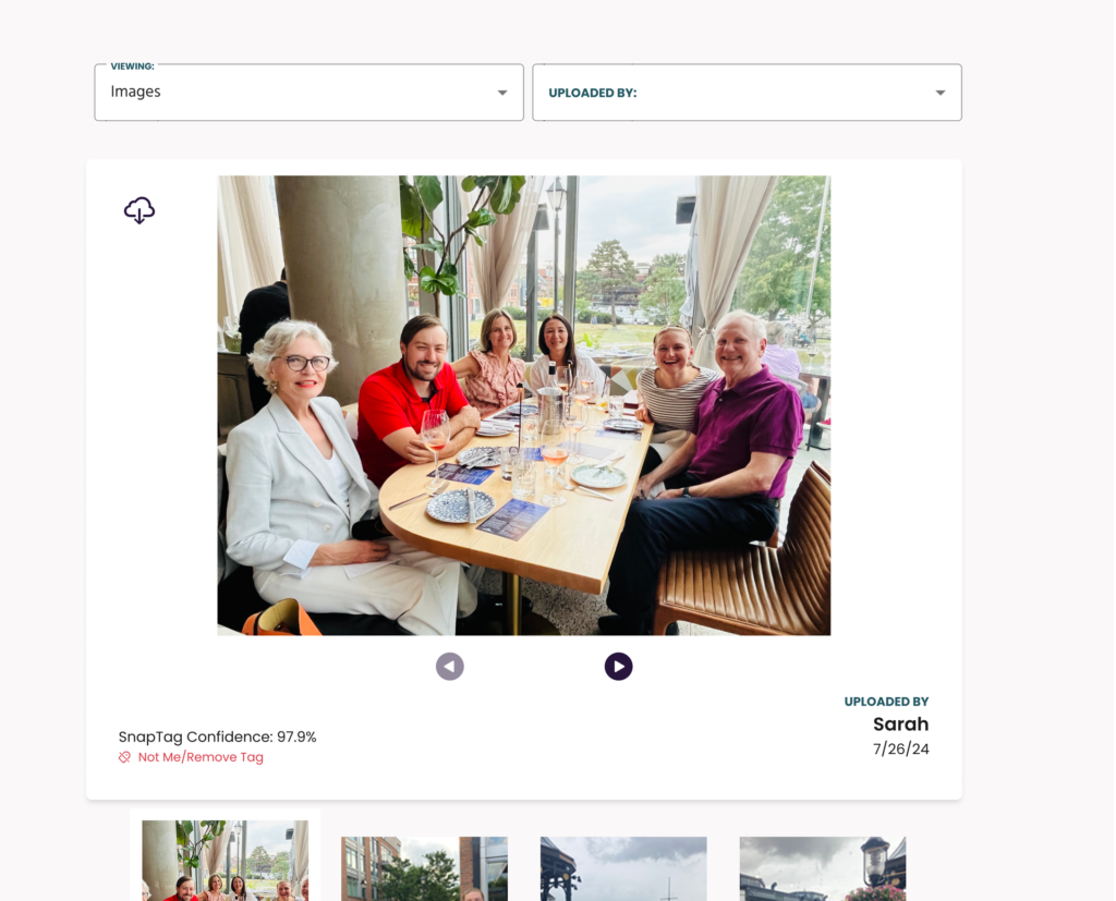 Your customers can easily view all images of them from your event in one place, on their Tags Dashboard, if you have allowed that access.